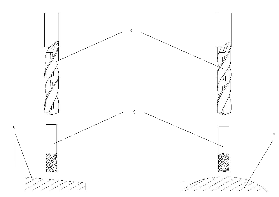 在斜面及曲面上加工孔时,先采用铣刀在斜面或曲面上加工一平面,再经过机床更换中心钻及钻头进行加工,增加了刀具成本,同时也增加了机床换刀辅助时间,影响加工生产效率,因加工时多把刀具配合,孔壁易产生台阶,孔表面质量差等问题。
